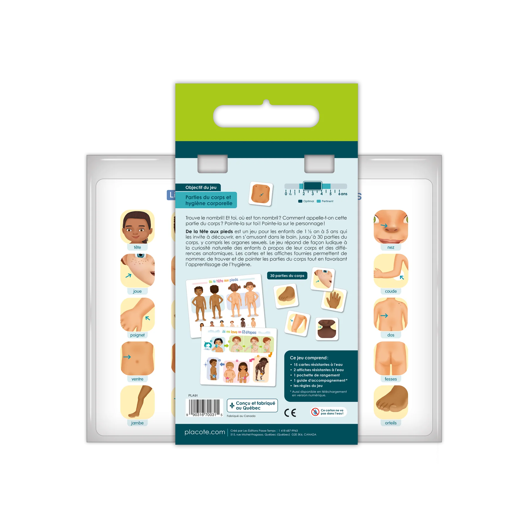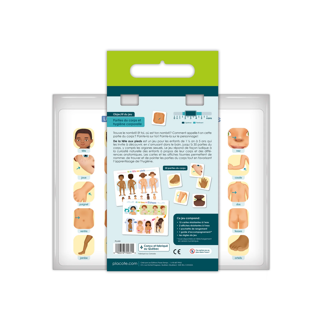 Un jeu éducatif et ludique pour les enfants de 1½ à 5 ans qui les aide à reconnaître et nommer jusqu’à 30 parties du corps, y compris les organes génitaux, tout en abordant l’hygiène et la diversité corporelle. Conçu pour enrichir le vocabulaire, favoriser une image corporelle positive et initier, en douceur, les notions d’intimité et de respect du corps. Parfait pour le bain, ce jeu encourage un lien de confiance parent-enfant autour de la découverte du corps.